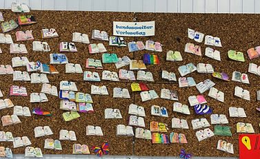 Zum Abschluss dieses vielfältigen Vorlesetages gestaltete jedes Kind ein kleines Buch, in dem es die Eindrücke des Tages festhielt- sei es über Buchtitel, Zeichnungen oder persönliche Zeilen. Alle entstandenen Mini-Bücher finden nun ihr Platz im Foyer der Schule, wo sie „aus einem bunten Märchenbuch“ herausfliegen. Die Ausstellung lädt Besucherinnen und Besucher dazu ein, stehenzubleiben und die vielen individuellen Werke zu entdecken.